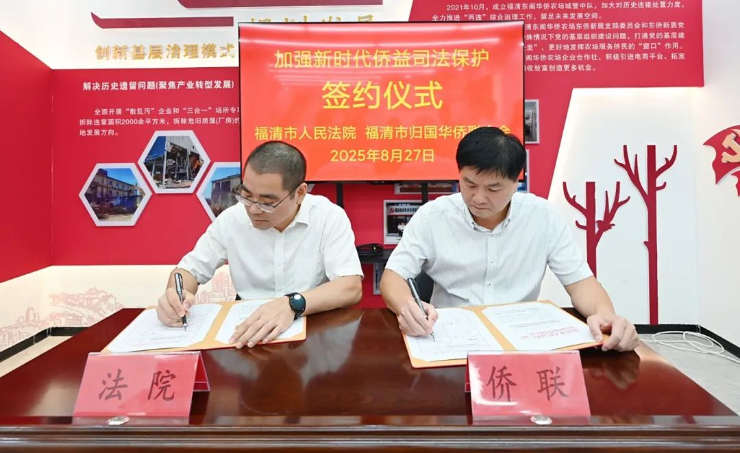 当天,福清法院与福清侨联还正式签署《关于加强新时代侨益司法保护的实施意见》,为侨益司法保护工作搭建起制度框架,进一步明确了法院与侨联在侨益保护领域的协作方向。