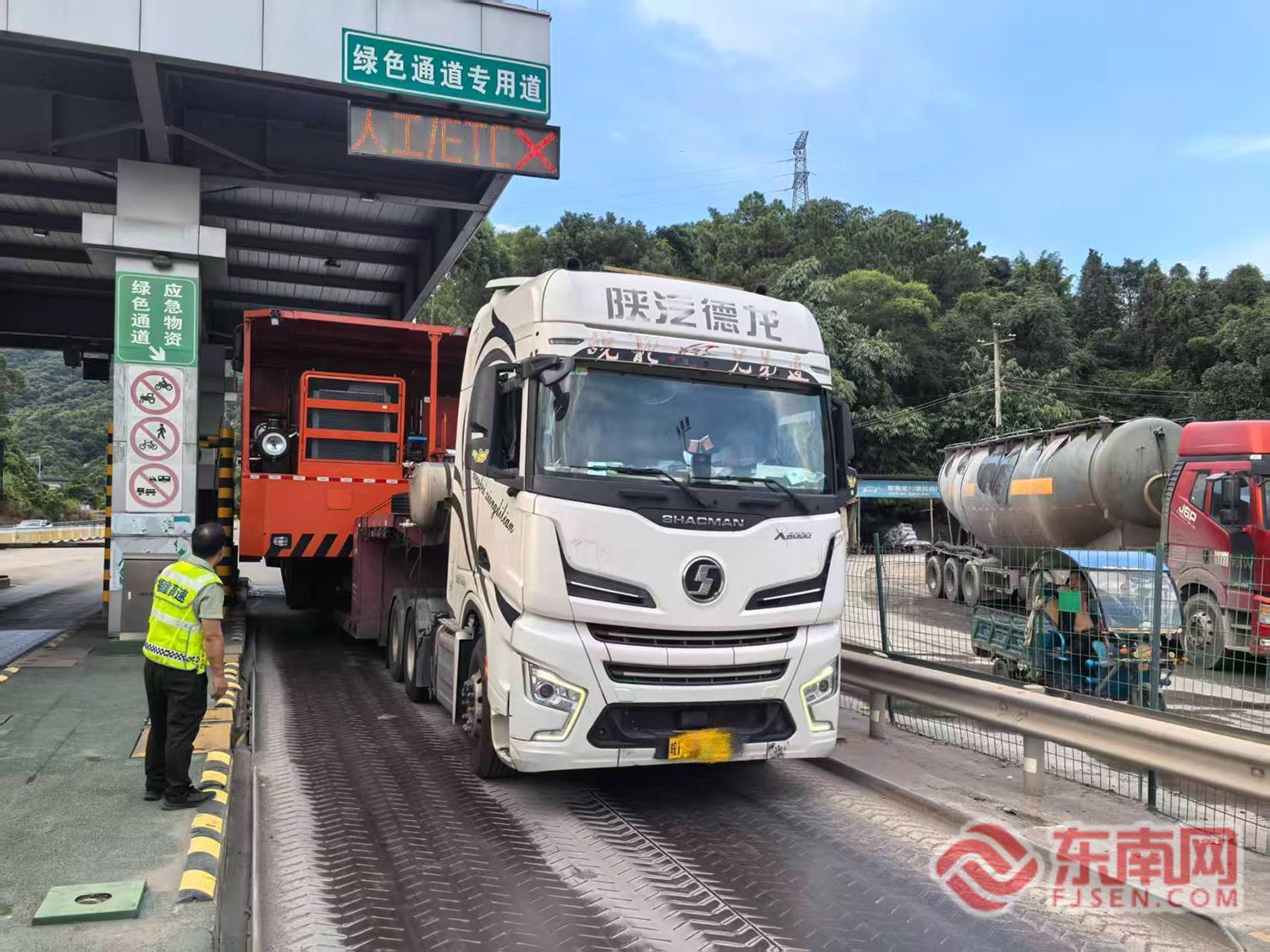 东南网9月29日讯(通讯员 陈亮明 陈芮)近日,一辆皖籍超限运输车辆行驶至湾坞收费站出口时,因车身宽度达5.9米,远超常规车道标准,无法正常驶出。若长时间滞留,不仅会耽误司机行程、影响企业生产物资交付,更会对高速公路通行安全带来隐患。