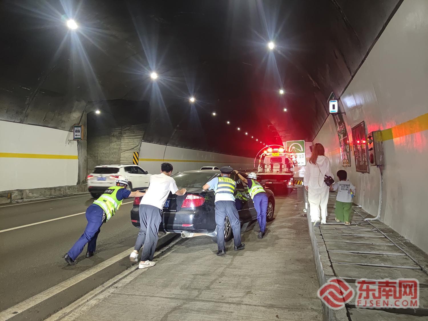 执法员、高速路勤、司机合力推车 考虑到节日返程高峰“分秒必争”,执法员依托“5+N”联动机制,随即联络岗上隧道旁联合保畅服务点的高速路勤人员。一场“合力保畅”的攻坚行动就此展开,众人化身“推车卫士”,徒手将故障车辆推进隧道的“应急停车港湾”内,等待清障救援,道路秩序很快恢复正常。