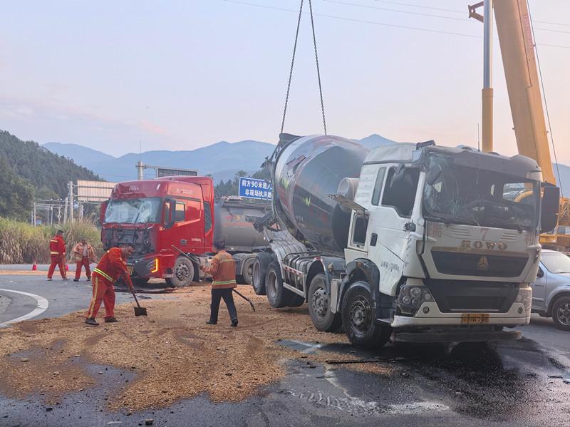 东南网12月8日(通讯员 徐紫莹)12月4日下午4时,在沙县区X7B4线南阳互通口路段突发一起交通事故,导致水泥和机油污染路面近300米,污染面积达500平方米。事故发生时,三明市公路事业发展中心沙县分中心城关公路站的职工正在附近开展日常养护工作,听到事故发生的动静,立即朝着声音来源地赶去。
