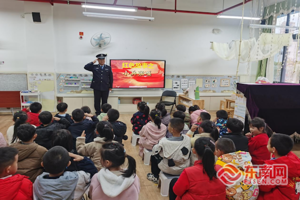 东南网1月20日讯(通讯员 梁超)“小朋友们,如果遇到坏人会害怕吗?”“小英雄张嘎是怎么打败敌人的呀?” 近日,闽西监狱四监区民警梁超带着这些问题走进龙岩市新罗区西城中心幼儿园,以“红色润童心,薪火永相传”为主题,为孩子们带来了一场生动有趣的红色教育课。活动通过故事讲述、情景体验、歌声传递等形式,在童心中悄然播下红色种子。