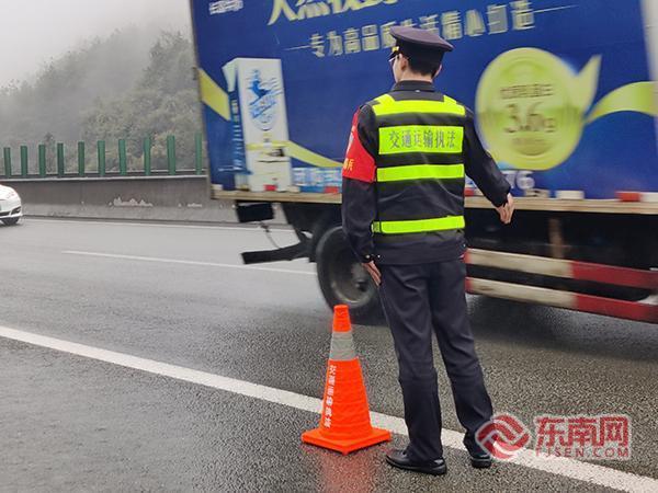 宁德高速执法支队雨雾天气快速救援爆胎车辆