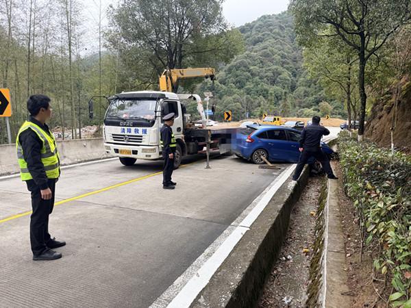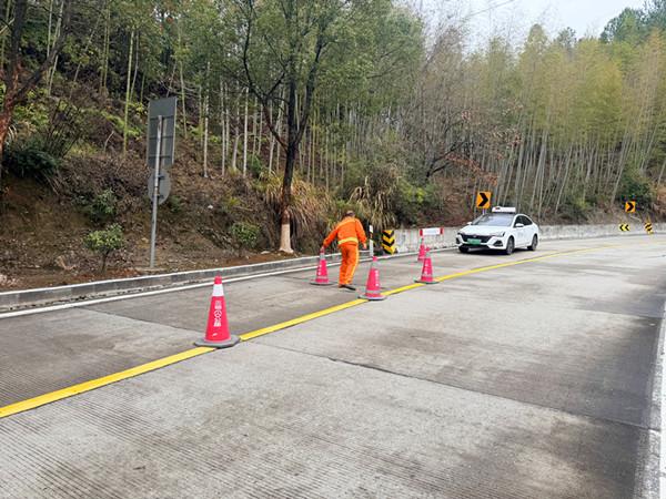 泰宁料坊村路段发生事故。 东南网2月26日讯(通讯员 曹晓丹 文/图)春运保畅关键期,泰宁公路分中心加大路面巡查力度,全力保障道路安全畅通。近日,在日常巡查中快速处置一起突发车祸,全力保障辖区公路通行安全。 2月25日上午8点,料坊公路站巡路人员沿G528大田路段巡路时,发现料坊村路段发生事故,一事故车辆占用主行车道右侧,且位于弯道,存在二次事故风险。巡路人员立即启动春运应急处置预案,按照“安全防护优先、快速清理保通”原则,迅速在事故现场150米外布设反光锥筒、警示标志,划定安全作业区域,同步引导后方车流减速分流。