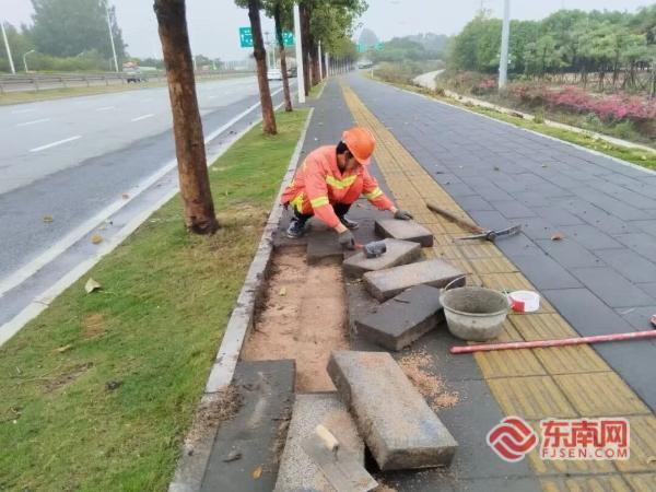 公路部门修复缺损的人行道透水砖(厦门公路中心供图) 同时,公路部门加大交通安全设施巡查检修力度,修复缺损的人行道透水砖、人行天桥劈离砖、人行道障碍墩,补装、校正警示桩,安装太阳能爆闪灯,并对地下通道照明、扶手及泵房水泵等设施进行全面保养,提升道路安全保障能力与服务品质。 海沧公路部门表示,将持续做好公路管养与环境提升工作,为市民营造畅通、安全、舒适、美观的出行环境。 |