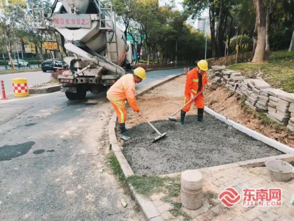 公路部门对辅道人行道“微改造”(厦门公路中心供图)