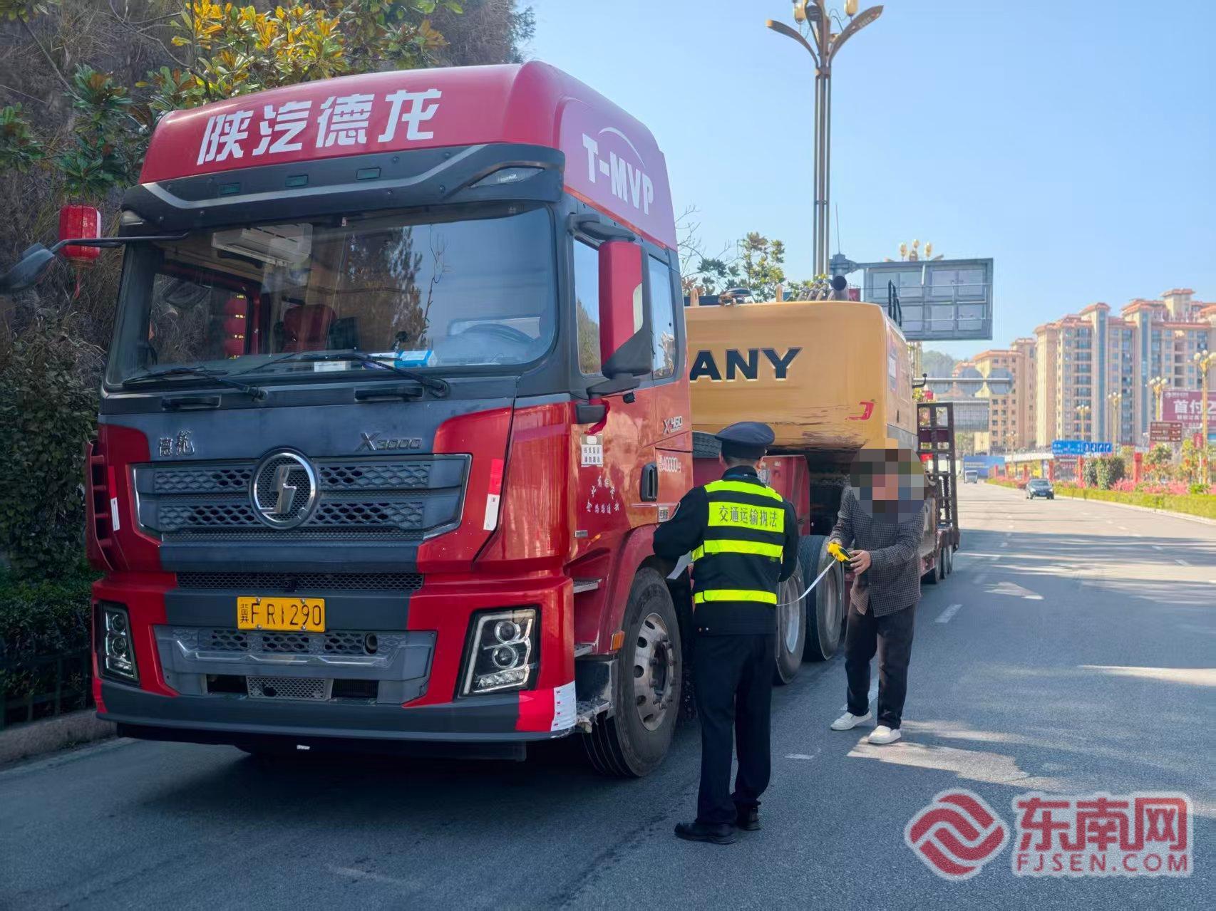 东南网4月1日讯(通讯员 戚盛楠 姚晨)“太感谢你们了!本来还担心赶不上工期,没想到这么快就完成勘验、拿到通行证,为复工复产抢回了宝贵时间!”近日,跨省运输大型挖掘机的司机刘师傅,对宁德高速执法支队屏南中队高效便捷的服务连连点赞。 据悉,刘师傅驾驶货车载运一台重型挖掘机,从宁德屏南出发前往河北唐山,参与当地重点工程复工建设。该车货总重60吨、最大宽度3.75米、总长度23米,属于二类大件运输车辆,按照《福建省大件运输并联许可服务与管理实施细则(试行)》要求,需经现场勘验合格并取得《超限运输车辆通行证》后方可上高速行驶。由于工程开工在即,刘师傅提交申请后十分焦急,担心勘验审批流程耽误工期。