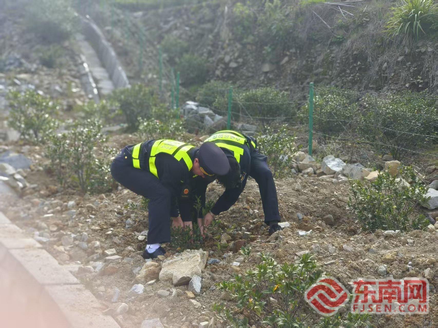 宁德高速执法支队供图 对逾期未整改的,大队依法组织强制清除。在甬莞高速A384路段,一棵棵违规种植的黄栀子树被有序移除,被侵占的高速公路用地重新恢复了本来面貌。现场拉起警戒线,执法人员全程指挥,确保清理作业安全、规范、高效。 清除不是目的,长效管理才是关键。为防止问题反弹,大队在清理结束后,立即通知有关部门对沿线破损、缺失的隔离栅进行全面修复加固,从物理上阻断违法侵占的“回头路”。 此次行动共清理违法种植面积约100平方米,既消除了看得见的隐患,也通过“执法+修复”的组合举措,进一步规范了路产管理秩序。下一步,四大队将持续加大巡查管控力度,常态化开展爱路护路宣传,让“不敢占、不能占、不想占”成为沿线群众的行动自觉,全力守护高速公路安全畅通。 |