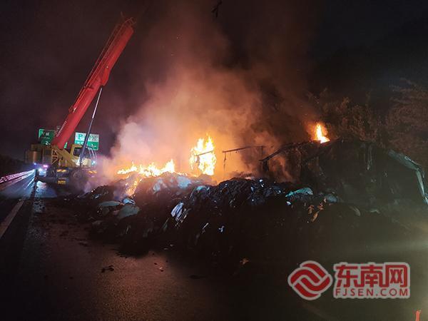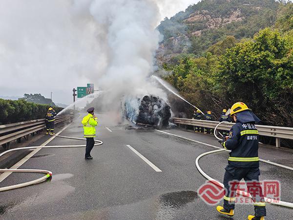 货车高速突发自燃 宁德高速执法霞浦中队全程值守保畅通