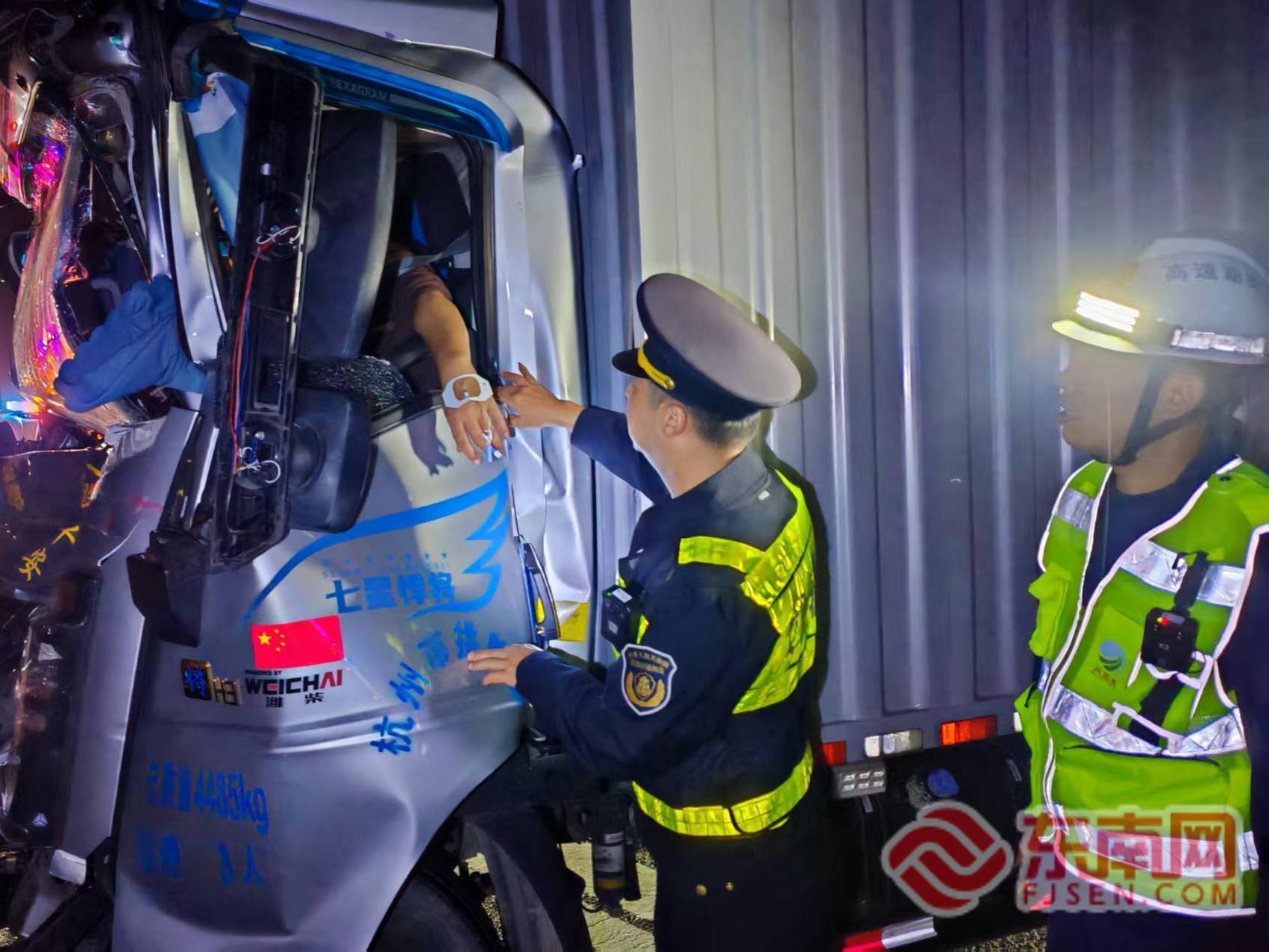 紧急救援!宁德高速执法人员联动多部门成功解救追尾事故被困司机