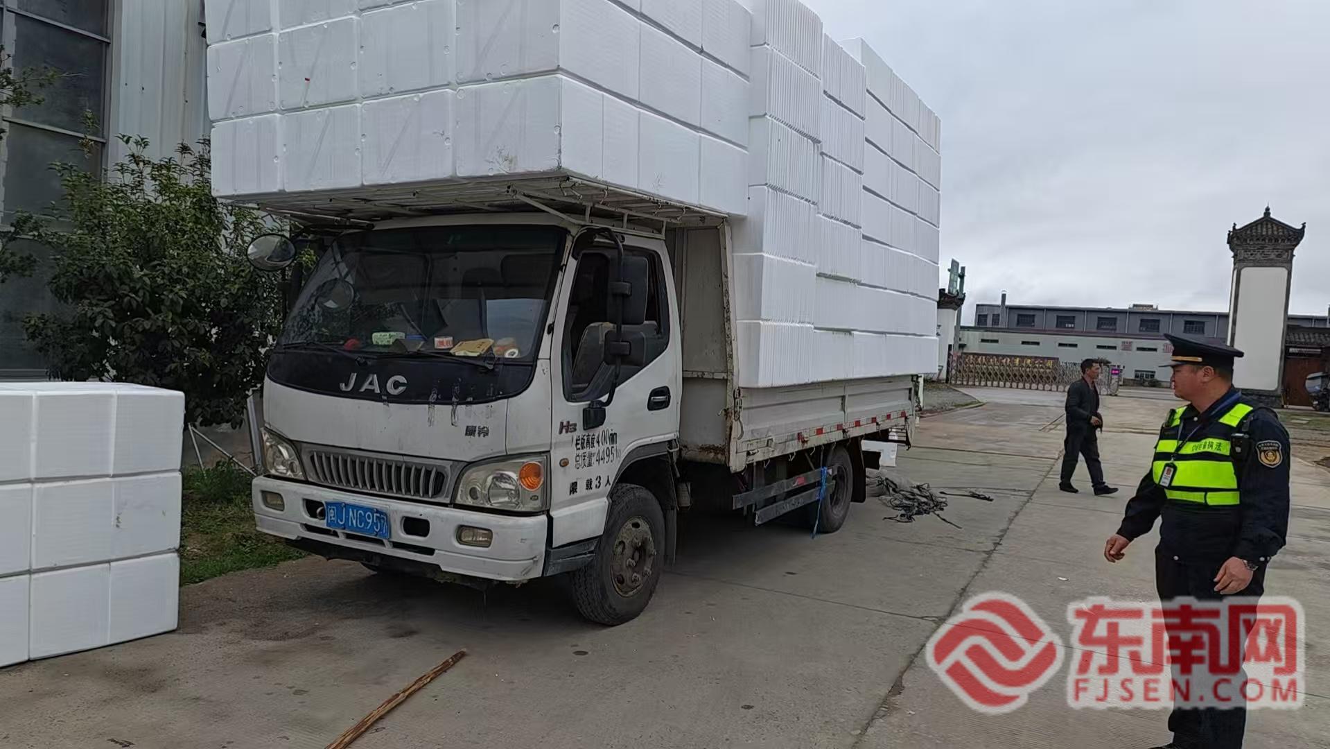 经劝导司机配合卸货。宁德高速公路行政执法支队供图 该车辆长期违规装载轻质泡沫,因货物体积大、重量轻,驾驶员为追求运输效益刻意加高装载,忽视了超高带来的通行风险。超高车辆易刮碰沿线设施、影响车辆稳定性,在高速行驶中极易引发侧翻、追尾等事故,对自身及其他道路参与者的生命财产安全构成威胁。