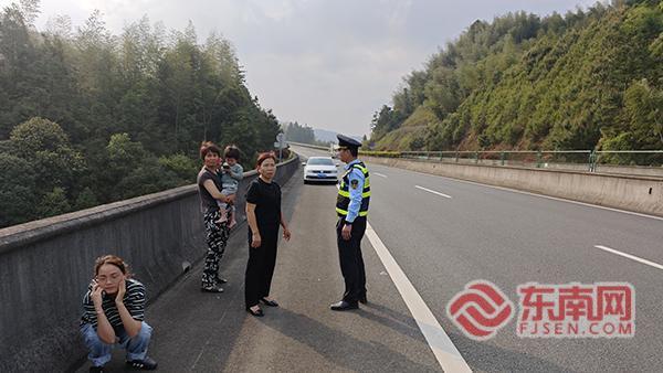 东南网4月16日讯(通讯员 黄建强)4月14日下午,宁德高速执法支队柘荣中队执法人员在甬莞高速开展日常路面巡查工作,行至管阳收费站附近路段时,发现一辆小型轿车违规停靠在高速应急停车带内,车辆周边还有老人、孩童多名群众滞留路面,现场存在极大道路交通安全隐患。
