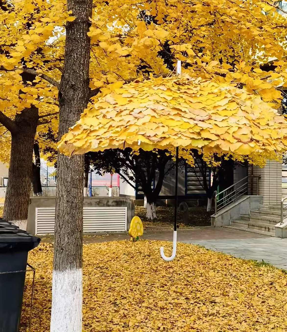 近日,大连外国语大学校园里的“银杏伞”悄然走红网络。那些由银杏叶拼贴成的雨伞,以及星星、笑脸、爱心,静静地悬挂在树下、铺展在路面、点缀着桌椅,没有华丽的修饰,也不见刻意的设计,却让匆匆赶路的师生忍不住驻足流连。而这一切美好,都出自校园里日复一日默默劳作的保洁阿姨之手。这场秋日里不期而遇的浪漫,不仅为校园添上一抹温暖色彩,更在喧嚣的日常中,向我们传递着关于热爱、坚守与生活本质的朴素答案。