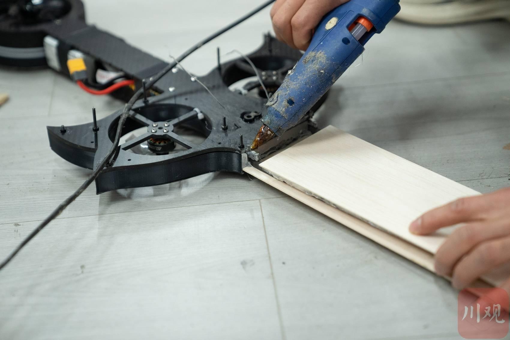 范十三团队组装剑形飞行器。图片来源:四川在线