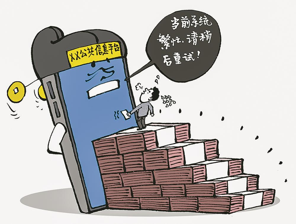 登录时迟迟没反应,被频繁要求输入验证码后,还会面临系统崩溃、信息过期的情况。这是不少用户在使用部分国家级公共信息服务平台时经常遇到的窘境。据《新华每日电讯》报道,一些公共信息平台存在登录查询难、系统易崩溃、信息更新慢等问题,受到用户诟病。“建而难用”是公共资源的浪费,更是对建设初心的背离,唯有正视短板、全面发力,打破“数字梗阻”,才能让权威信息释放价值,真正让公共服务惠及企业与群众。王志顺/文 王铎/图