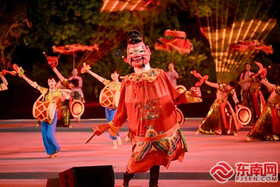 晚会以"绿韵长泰"为序章徐徐展开,通过《状元•问》情景剧与《绿韵长泰》生态舞蹈的沉浸式演绎,生动再现千年古邑的人文积淀。在“四季飘香”篇章中,非遗瑰宝焕发新彩——国家级非遗古傩舞与省级非遗何阳拳、大鼓凉伞同台辉映,漳州方言说古艺术携观众穿越历史长河,郭源源清丽婉转的《遇见》更添诗意。 “繁花似锦”单元创新融合传统与现代元素,既有鼓乐与提线木偶的跨时空对话,又有童声合唱《我在这里长大》的温情述说,搭配时尚说唱《醉美漳州》的律动节奏,展现传统与现代的和谐共生。压轴的“山河共情”篇章高潮迭起,闽台歌手联袂献唱《声声不息》架起情感桥梁,惊险杂技《美味漳州》以肢体语言诠释美食文化,两岸艺术家同台演绎歌仔戏更彰显文化同源。