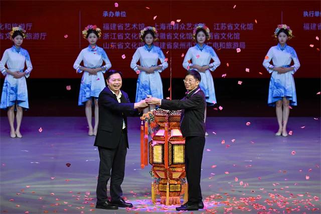 华东六省一市现代地方小戏大赛承办地交接仪式 演出在《闽山闽水物华新》的昂扬旋律中结束。活动通过省市多平台同步直播,线上线下累计吸引近千万人次观看,充分彰显了现代地方小戏的时代魅力与蓬勃生机。