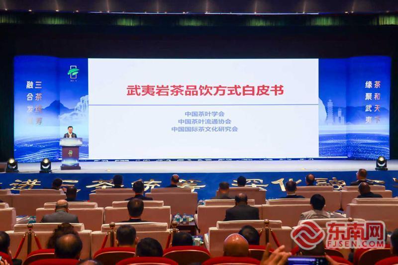 《海峡两岸茶园碳汇项目方法学》发布 东南网记者 肖练冰 摄 16日上午,开馆式在武夷会展中心举行,现场发布多项行业重要成果:中国国际文化传播中心执行主席龙宇翔发布世界乌龙茶红茶发源地宣传视频;中国工程院院士、湖南师范大学校长刘仲华发布《武夷岩茶品饮方式白皮书》与《建阳小白茶品质化学特征与保健功能研究白皮书》。中国农科院农业环境与可持续发展研究所研究员董红敏、国家气候战略中心统计核算部副研究员张曦发布《海峡两岸茶园碳汇项目方法学》及首批零碳茶产品。中国农业科学院农业经济与发展研究所研究员、联合国粮农组织全球重要农业文化遗产科学咨询小组前副主席李先德现场推介《半小时读懂武夷茶》。