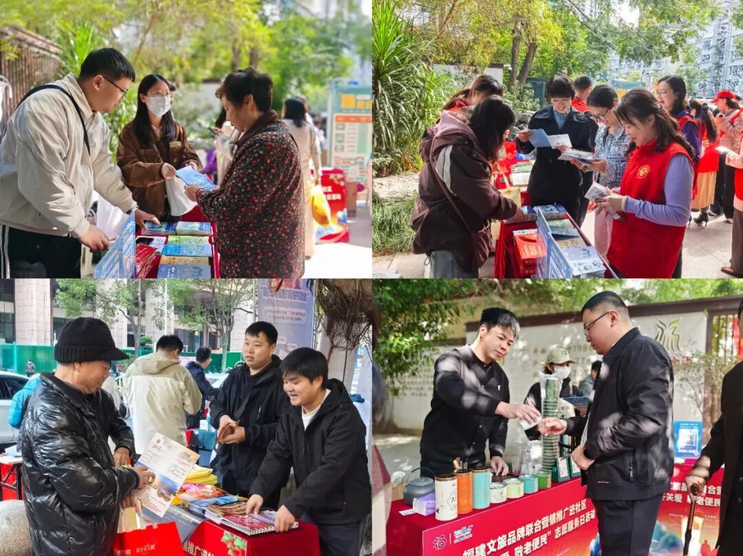 文旅企业宣传 本次活动得到了众多文旅企业以及相关单位的积极响应与大力支持。西方财富酒店、福州首开君澜温泉酒店、中青国际旅行社、螺江茶业等旅游企业纷纷亮相现场,为现场社区居民分发宣传资料和宣传品,开展旅游服务咨询,积极推广我省特色的旅游资源及产品线路;文旅品牌宣传推广展台开展了扫码送礼活动,发放福建文旅宣传折页、口罩、行李牌、暖手袋等宣传品,吸引了不少社区居民驻足围观。