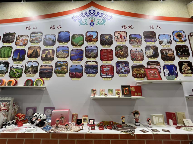 本次旅展整体设计以闽南古厝的红砖、山花、燕尾脊为主元素,配以时尚的小小蟳埔女打卡区、汉服簪花体验区,还特别设置漳州木版年画拓印“福”字、福建茉莉花茶和武夷岩茶品茗以及“趣游福建转转乐”大抽奖等丰富多样的互动体验项目,文创品陈列与图片展区巧妙融合,设计风格复古典雅、福建乡情味十足。展区内精选46幅图片,展出鼓浪屿、武夷山、福建土楼等福建5大世界遗产的特色风貌,涵盖福建的山水、人文、古厝、民俗、非遗和美食等,帧帧出彩的文旅图片以及“周末戏相逢”和福建文旅脱口秀等品牌活动的图文视频展播呈现闽式生活的精彩与活力,吸引众多台湾观众游客驻足回味。