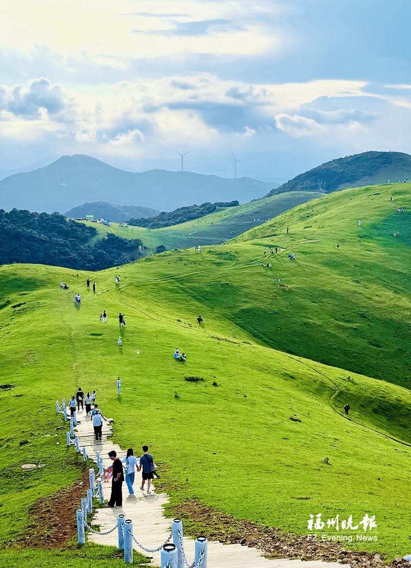 古堡式建筑群食菜厝。 盘活文旅资源 山水草原焕发新生机 最近,南岭镇再添浪漫新景——一条以爱情为主题的环湖步道在龙津湖畔亮相。 记者看到,湖面波光粼粼,步道两侧绿意葱茏,朱熹留下的“龙津”石刻与现代浪漫景观相互辉映,成为福清文旅的新打卡点。 南岭镇拥有福州境内最大的高山草场,6500亩的辽阔草地与海拔633米的开阔视野造就了独一无二的“登山即见海”景观。 近年来,依托高山湖景、大姆山草原等自然资源,南岭镇持续加快文旅资源整合步伐。滑草、空气大炮、云朵秋千等户外项目,让游客在山野间尽情释放活力;山顶上的云间集露营地、大姆山观景台、风动石公园等新晋打卡点,为游客提供更多休闲体验。 与此同时,南岭镇加快完善基础配套,推进水电路网污提升工程,新建西溪生态停车场、游客服务中心、容园茶室、自然课堂等设施,通过打通山、水、村之间的串联线路,构建“可漫步、可停留、可体验”的旅游环境。 “从日落看到星空”是许多游客对南岭的印象。今年南岭又推出云间集露营地、望月桥、彩虹桥、容园茶室等新设施,为游客提供多层次旅游体验。