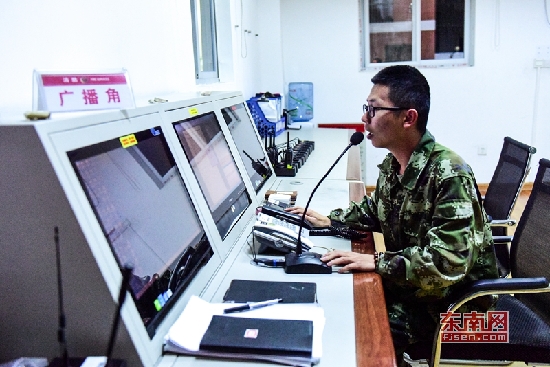 在中队的广播角,两位后勤人员24小时轮岗,确保信息第一时间传达到位。东南网记者 林婕 摄