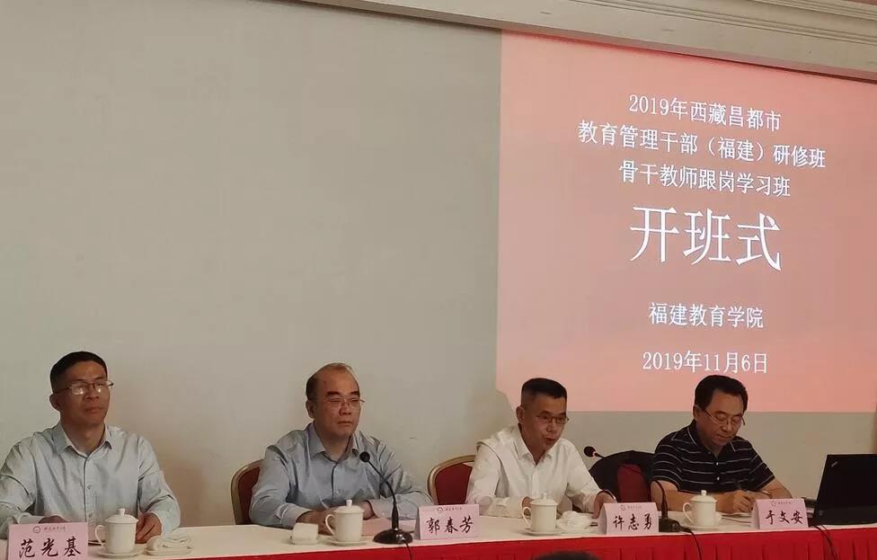 跟岗培训 图片来源:福建第九批援藏队 根据教育部等四部委《关于做好组团式教育人才援藏》和福建省教育厅《关于进一步做好教育对口支援和东西部扶贫协作工作的实施方案》相关精神,福建省第九批援藏队组织昌都市22名教育管理干部和13名骨干教师赴福建教育学院分别开展为期15天的短期和为期1年的跟岗培训。 为确保本次培训工作顺利开展,2019年11月6日,在福建省开展“2019年西藏昌都市教育管理干部(福建)研修班骨干教师跟岗学习班开班仪式”,福建省教育学院书记、院长、国培专家郭春芳同志,福建省教育厅教师工作处处长许志勇同志,跟班培训学校负责同志以及参加本次培训的35名学员参加了本次开班仪式。开班仪式由福建教育学院校长研修部书记、主任、文化建设研究专家于文安同志主持。 首先,许志勇同志就福建省自然、人文、教育发展概况、闽昌教育交往历程等方面代表福建省教育厅进行了慷慨激昂的开班致辞,同时,结合本次培训工作的实际提出了具体的培训要求。随后,培训项目负责同志做了具体的表态发言。接着,参加本次培训的学员代表结合自身实际进行了表态发言,将倍加珍惜本次培训机会,认真培训,做好培训笔记,严格遵守培训纪律,确保本次培训达到预期的效果。 最后,郭春芳同志讲话,从希望学员深度参与学习、坚持学以致用、严格遵守纪律和确保培训安排等四个方面对本次培训工作提出了具体的工作要求和希望。 会后,各参训学员纷纷表示,要倍加珍惜本次培训机会,要充分结合自身工作实际做到学以致用,将先进的教育管理理念和教育教学理念与昌都教育工作充分结合起来,以开展“不忘初心,牢记使命”主题教育活动为工作契机,进一步查找自身工作中的不足和短板,俯下身,扎实学习,确保个人业务水平和素质不断提高和完善。 |