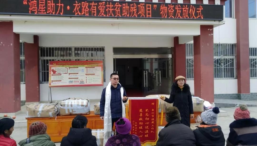 近日,福建省第九批援藏工作队洛隆工作组、边坝组、左贡组在各县举行了“鸿星助力·衣路有爱——扶贫助残项目”爱心物资捐赠活动,为残疾人士和贫困群众代表送上福建省残疾人福利基金会与福建鸿星尔克体育运动用品有限公司携手捐赠的御寒衣服,送去冬日温暖。贫困群众代表和残疾人士代表向工作队献上哈达和锦旗。 此前,经由福建省第九批援藏工作队八宿工作组与相关部门联系,获得福建省残疾人福利基金会向福建省第九批援藏工作队捐赠价值500万元的鸿星尔克品牌服装,用于资助西藏昌都市残疾人、贫困户公益事业发展。