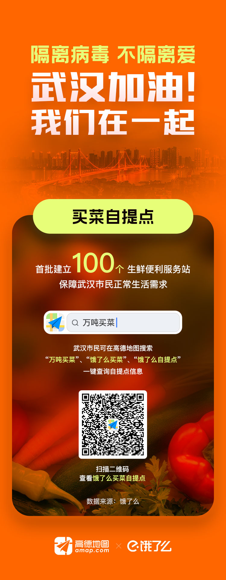 高德标注饿了么在武汉设置的100个生鲜便利服务站