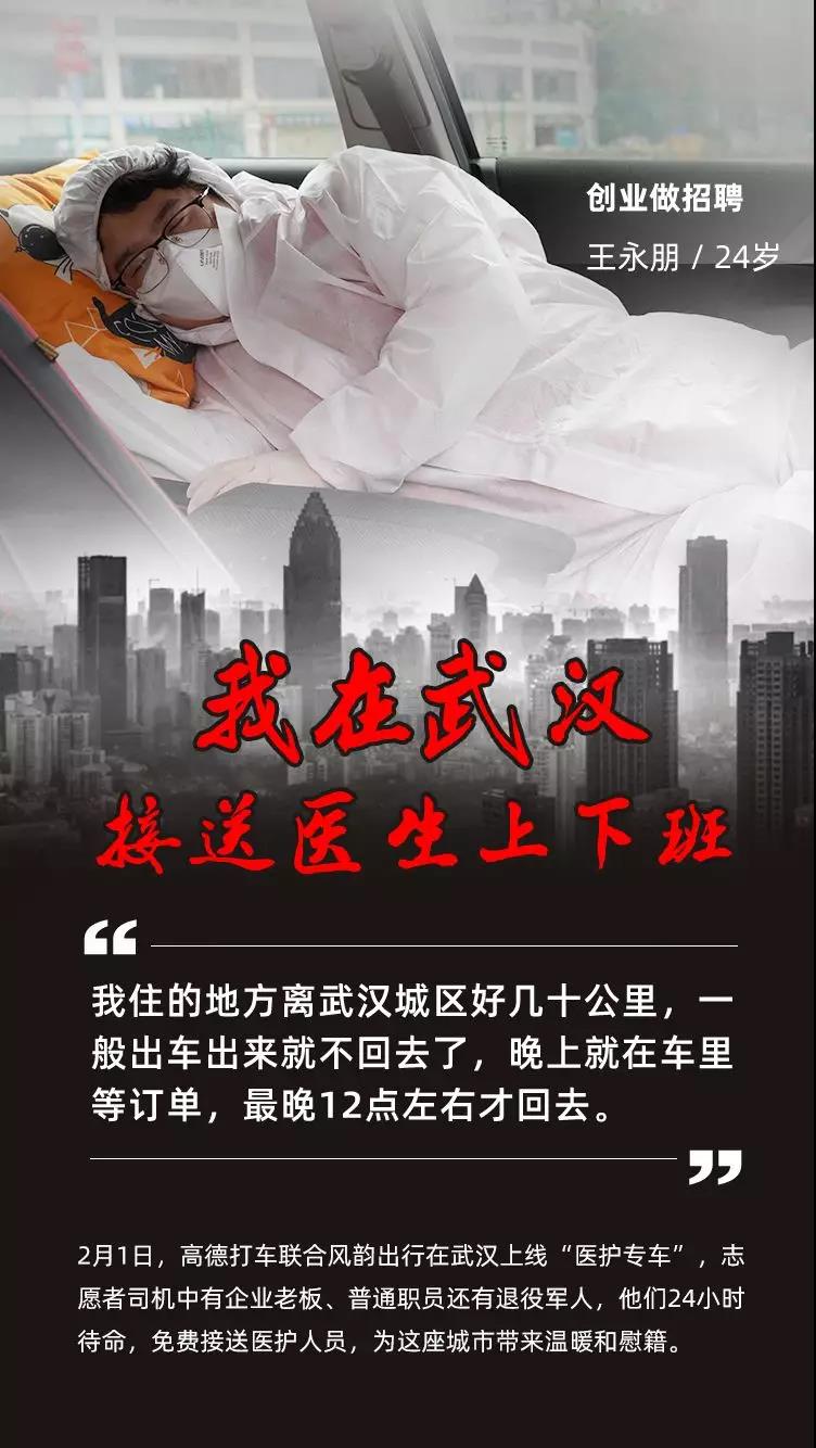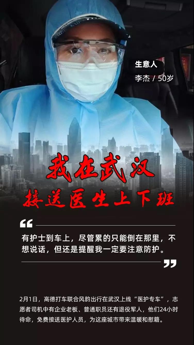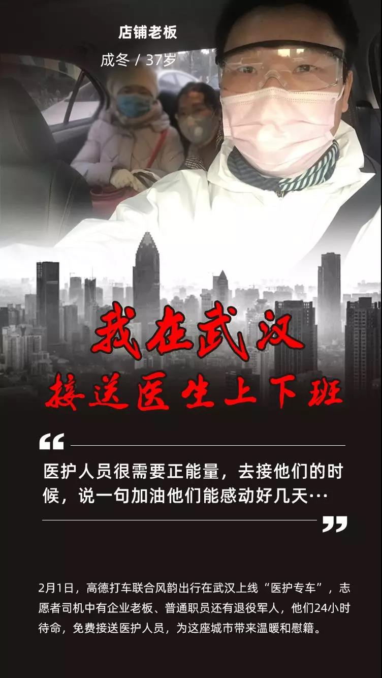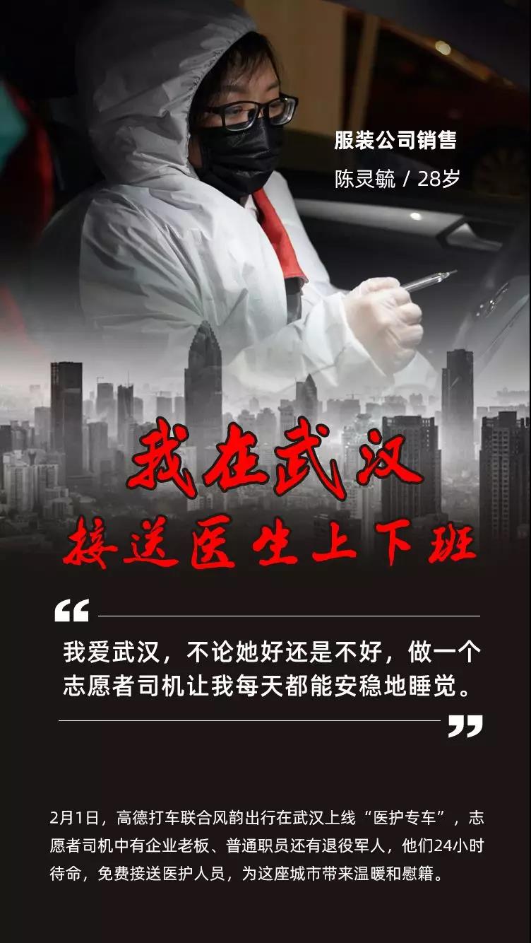 疫情爆发以来,武汉市公交、地铁相继停运,私家车禁行,这座千万人口的巨型城市突然间沉寂下来。但有一群志愿者司机,仍然活跃在武汉的路面上,他们穿着防护服,配备消毒液、口罩等装备,组成了武汉的临时动脉,在各个医院间穿梭,免费接送一线医护人员。他们中有企业老板、普通职员还有退役军人,疫中逆行,不讲条件,24小时随时待命。在空荡的街道上,他们制造着这座城市为数不多的发动机声,给武汉带来温暖和慰藉。 向所有一线的医护人员和志愿者司机们致敬!