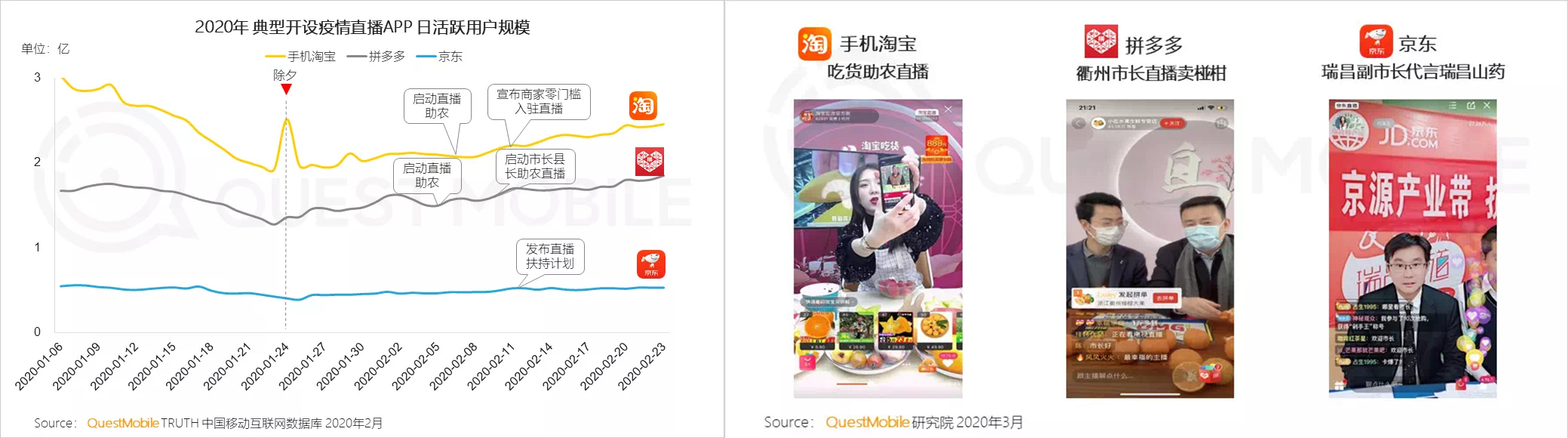 ▲3月10日QuestMobile发布《2020中国移动直播行业“战疫”专题报告》,报告显示新电商拼多多于2月率先在行业推出“市长县长直播助农”活动。 农业农村部此前于2月17日召开“全国农产品产销对接”视频会议,在农业农村部指导下,新电商拼多多发起成立“农产品产销对接公益联盟”,集中全平台资源抗疫助农,并协同各会员单位积极与全国农业产区展开农产品产销对接。 疫情防控期间,拼多多一直致力于打通农产品上行的难点、痛点,大力推动“农货产销对接”,发挥平台“天网”+“地网”农产品供需匹配机制的优势。相关数据显示,2019年拼多多平台农产品成交额达到1364亿元人民币,成为中国最大的农产品上行平台。 拼多多于2020年2月初正式上线“抗疫开拼、爱心助农”专区,并紧急开通“滞销农货反馈通道”。该专区覆盖包括230多个国家级贫困县在内的全国近400个农产区,商品覆盖脐橙、苹果、草莓等各类水果和主要生鲜食材。截至3月6日中午12点,该专区成交订单量已达760万单,售出滞销农产品总计接近8000万斤,累计帮扶各类型农户超过24000余户。 在农业农村部指导下,拼多多联合优农协会开启专项采购百亿贫困地区农产品的“农货产销对接”活动。自2月19日起,浙江衢州椪柑、广东徐闻菠萝、广西荔浦砂糖橘、海南保亭百香果、安徽砀山梨等多种地方特色农产品首批上线。浙江衢州市市长汤飞帆、广东徐闻县县长吴康秀、重庆市开州区区长蒋牧宸、安徽砀山县县长陶广宏等亲自参与助农直播。 《报告》课题组在调研中认为,作为新电商平台,拼多多在抗疫助农中的实践有以下四大特色。 第一,集中全平台资源,优化产销对接。拼多多为了解决农产品直销和果蔬生鲜订单猛增的供需错位问题,线上线下两手抓。线下,直接或间接发动近6万名新农人,对接400多个产区,帮助农产品出村。线上,通过“抗疫农货”专区,给予农产品最高优先级的流量扶持,帮助农产品进城,以最短路径直达消费者,以最优惠价格购买产地直发的水果和蔬菜。 第二,作为“全国农产品产销对接服务公益联盟”发起方,拼多多联合各方力量,打通农产品上行通路。一方面,通过新农人迅速摸清各主要产区的库存现状,按照销售周期对农产品进行排序,将库存紧张、食用周期短的农产品,优先推送到消费者面前。另一方面,协调邮政、顺丰等骨干物流企业,保障重点产区的农产品上行通畅。同时,对平台农货系统里的产区信息、物流数据以及节点进行了紧急重新规划,优化农产品上行网络。 第三,履行企业社会责任,提供资金扶持,稳定农产品供应链。拼多多针对高频刚需农产品,提供了5亿元专项补贴,一方面引导农商以高于市场均价收购滞销农产品,保障小农户收入;另一方面平抑农产品价格,让消费者得到实惠。此外,拼多多还设立了10亿元物流专项补贴基金,针对符合条件的农产品订单,每单补贴2至3元,调动小农户和物流企业积极性,保障源头供应。 四是将推进农资下乡作为拼多多“保春耕”的阶段性战略重点。拼多多平台数据显示,2020年2月以来,农资农具销售额同比增长了987%,相比2019年电商传统销售旺季“双十一”期间,也增长了330%。2月份累计有超过430万农业生产者通过拼多多购买了农资农具投入春耕。近日,拼多多联合创始人赵佳臻表示,从3月份开始,随着各地纷纷进入春耕期,平台拟再提供3亿元农资补贴基金,并与联盟一起,着手打通农资农具“集采集销”绿色通道,推动头部农资企业、社会化物流企业与农业生产者直接对接,以规模化优势系统性降低农资农具的成本及价格,推动农资产品利用移动互联网大规模下乡。 其他主要电商平台也在积极行动。阿里巴巴于2020年2月6日全面启动“爱心助农”计划,着力打通线上线下农产品销售的全域网络,在助力滞销农产品触网“突围”的同时,加速农产品数字化。京东于2月10日发布“告全国农人书”,宣布开通“全国生鲜产品绿色通道”,全面开放并倾斜供应链、物流、运营、推广等核心资源,解决滞销生鲜农产品问题。 2020年是中国全面打赢脱贫攻坚战的收官之年,也是全面建成小康社会目标的实现之年。经过多年的长足发展,拼多多、淘宝、京东等电商平台已经进入和深刻影响中国人民生活的方方面面。在疫情防控期间,各大电商平台既肩负打赢疫情防控阻击战的责任,又要帮助政府把疫情对经济社会发展的影响降到最低。展望未来,各大电商平台将会更加关心农民,更加关注农业,不断完善支持农产品上行的举措,真正实现“最后一公里”和“最初一公里”的直连对接,帮助农民不断提升幸福感和获得感,促进中国农业生产和农村经济不断发展。 |