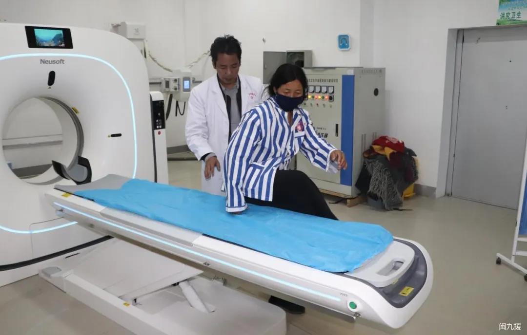 ▲农牧民患者使用最新的CT设备进行检查。 福建第九批援藏队供图 |