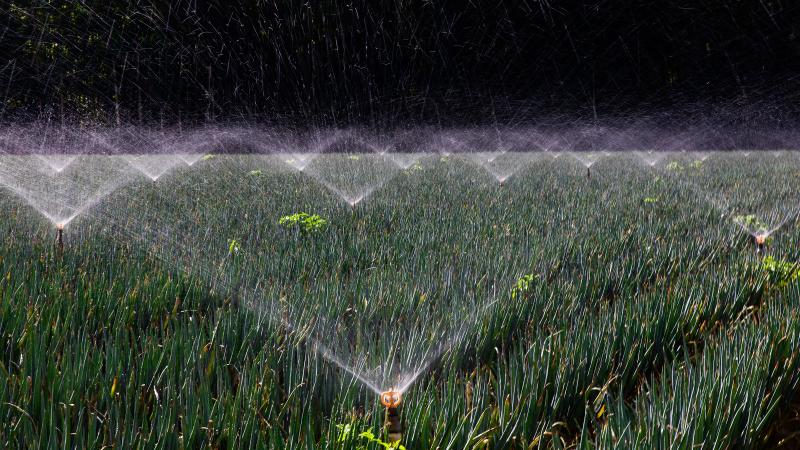 东山除了海滨风光,还有成片的葱田在水雾喷淋之下,别具特色。2020年5月17日摄于东山陈城镇