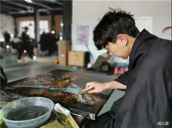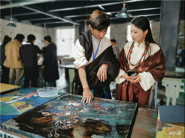 此次直播采取福州昌都两地连线方式,福建和西藏艺术家同步出镜介绍唐卡漆画的艺术之美,呈现新鲜出炉的唐卡漆画作品,让更多观众认识唐卡漆画,了解福建艺术扶贫工程,见证艺术超越时空的碰撞与新生。 在西藏昌都康巴文化产业园,福建省艺术馆领导、昌都文化局领导带领大家参观唐卡漆画培训现场,看学员们现场作画,欣赏学员作品,并介绍唐卡漆画培训班背景意义、现有规模、发展前景,还有培训班学员畅谈学习感受。
