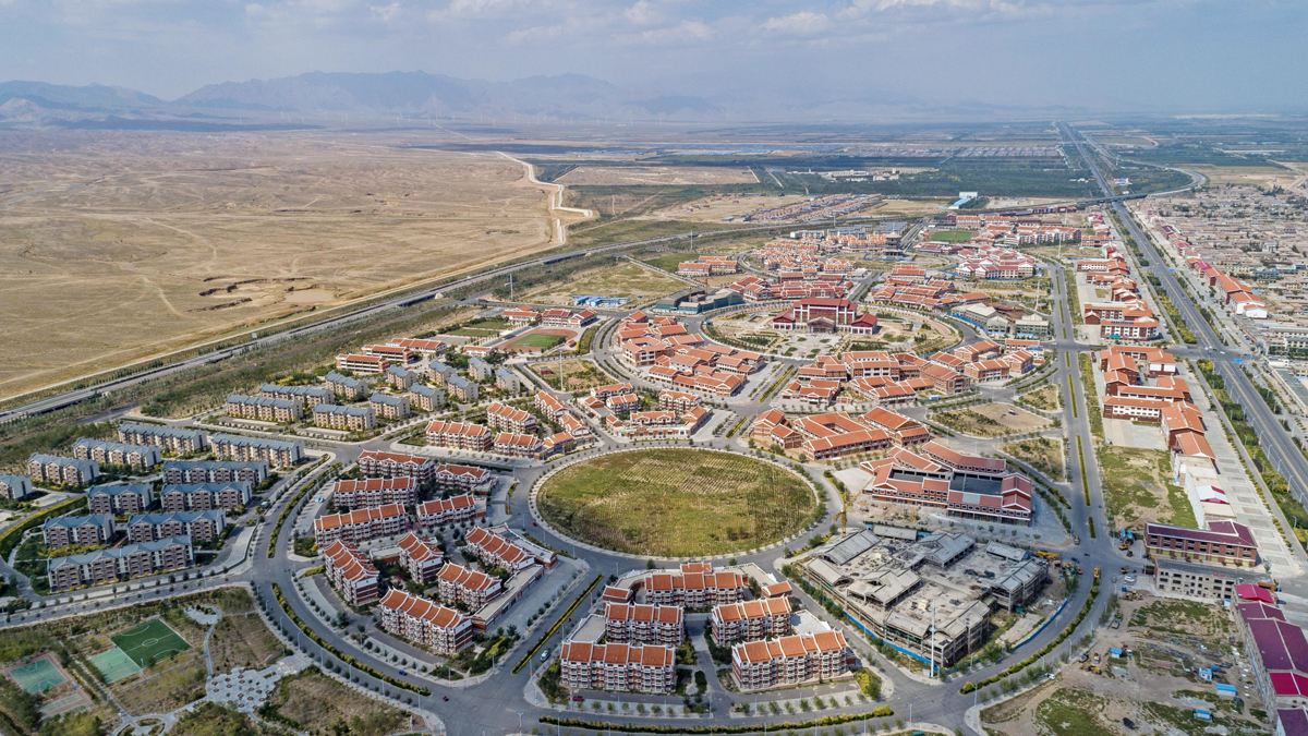 这是2019年9月3日拍摄的宁夏银川市永宁县闽宁镇新镇建设全景(无人机照片)。 新华社记者 王鹏 摄