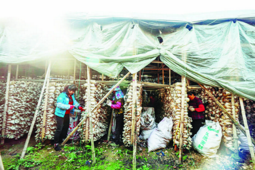采摘毛木耳。郑文典 摄