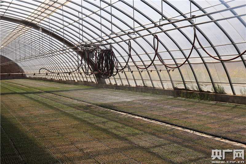 图为育苗室内的智能化喷灌设备。(央广网记者 母晨静 摄)