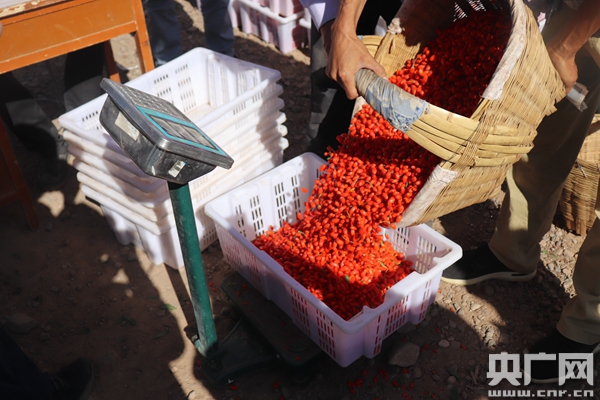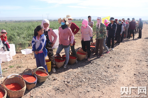 村民排队等待枸杞收购(央广网记者 母晨静 摄)