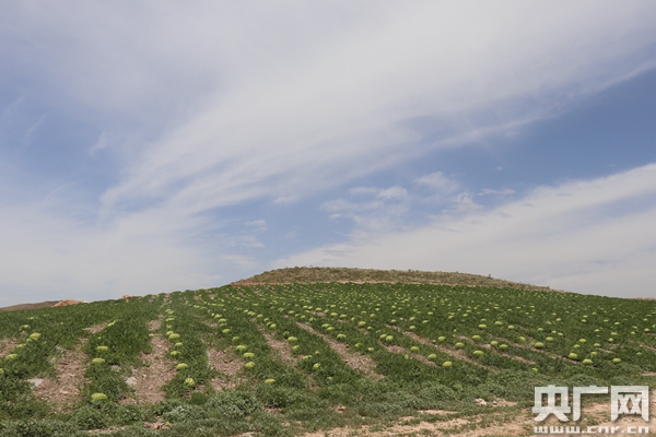 蓬勃生长的硒砂瓜(央广网记者 母晨静 摄) 喊叫水村现有户籍人口423户1181人,是中宁县重点贫困村之一。2006年以来,喊叫水村立足发展实际,不断创新思路、强化举措,加快产业结构调整,大力发展硒砂瓜特色种植产业。