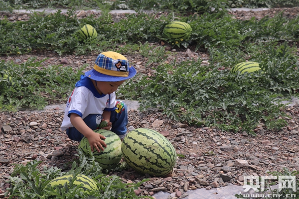 一个小朋友在瓜田里玩耍(央广网记者 母晨静 摄) 2018年,中卫市种植硒砂瓜90万亩,总产量达136万吨,实现销售收入18亿元,产业总产值超过25亿元。2019年,全市种植硒砂瓜达90.08万亩,其中3126户建档立卡户种植11.7万亩。蓬勃发展的硒砂瓜产业还带动了当地餐饮、住宿、物流等行业的快速发展。 密麻麻的葡萄带来致富新希望