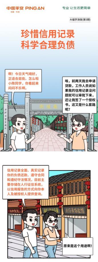 (3)制作《大福学消保》原创消保漫画期刊并组织员工通过朋友圈转发。《大福学消保》原创消保漫画第5期,本月主人公“大福”带着大家打卡福州网红景区三坊七巷,并学习什么是信用记录、如何查询、征信报告有什么作用等消保知识,以通俗易懂的漫画形式对广大消费者进行宣传教育。
