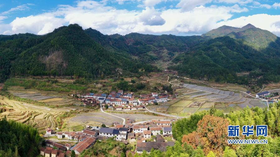 这是11月19日拍摄的大山之中的岭下村(无人机照片)。新华社记者姜克红 摄