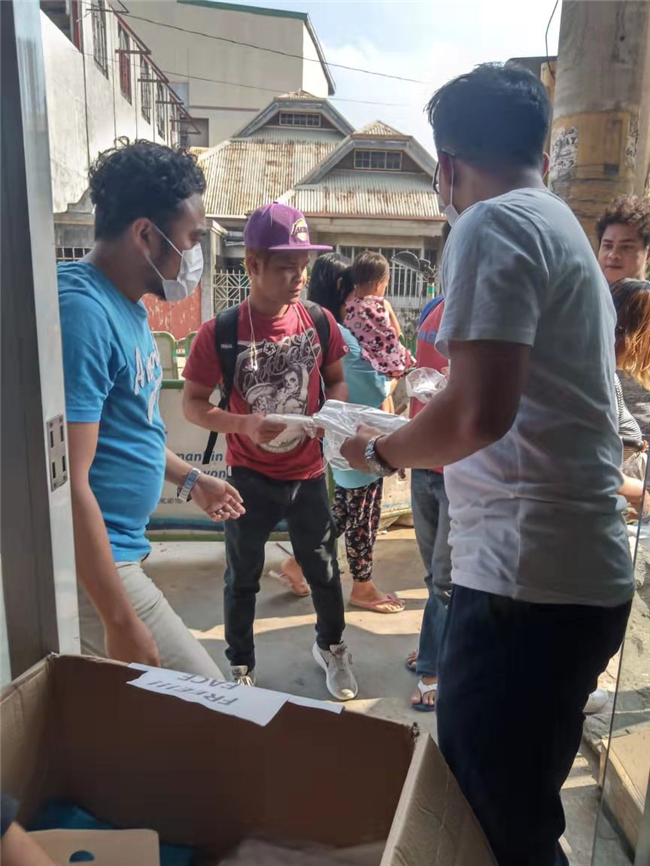 工人在店铺门口分发口罩 投稿单位供图 疫情当前,生命重于泰山,疫情就是命令,防控就是责任。位于我国的东南方,与中国隔南海相望的菲律宾,一场抗击疫情的战斗也全面打响。2020年1月30日,菲律宾确诊首例新型冠状病毒肺炎病例。新闻曝光后,当地民众在商场、药店、医院排起长队,口罩几乎被抢购一空。有识之士在网上向华人发出呼吁:“你们在购买口罩时,不要哄抢而空,留给当地人购买。不要哄抬价格,菲律宾人没有强大的购买力……”可是,菲律宾马尼拉市有2400万人口,菲律宾有将近1.1亿人口,口罩非常短缺,还有很多人外出时没有口罩防护,这是不言而喻的事。 我的家人已在菲律宾生活了几十年,面对疫情,我的弟弟杨卫军认为疫情面前,只顾自己,最终将危及到自身,而帮助菲律宾人,也是在帮助自己。2月3日,杨卫军从网上联系到口罩卖家,原本价格约为1元人民币的一次性口罩价格翻了一番,但他还是花费一万人民币,买到五千个口罩,并在店铺的玻璃门上贴出用英文打印的纸条,翻译成中文是:“随意拿!这里是面罩!2020年2月4日,星期二早上八点”的纸条,并注明是分发给低收入人群。 |