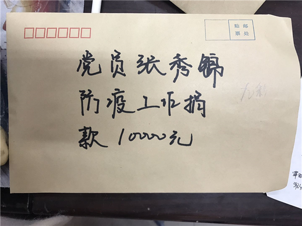 ![]() ![]() “我是一个1956年入党的(老党员)……今年刚好90岁。突听中国武汉发生疫病,因为我病痛都在家,只好在电视上看到报道消息,使我心中非常着急,但是我手无缚鸡之力,无法帮助党和国家做一丝一毫事,真心痛心。现在只好将国家所发的退休金中留下来的一点钱拿出来,作为一个中国共产党员的诚意义务。” 2020年3月3日下午,华大街道九彩社区党委收到了一封饱含赤诚的信件,随信附上的还有人民币1万元整。这封信来自辖区90岁高龄的老党员张秀锦。疫情发生后,张秀锦老人从电视上看到党员干部群众齐心协力奋战在疫情防控一线的相关报道,深受感动,委托其子女到九彩社区捐款。老人家表示,现在最大的心愿就是在大家的团结协作下,尽快打赢疫情防控这场硬仗。 华大街道党工委积极响应上级号召,迅速组织辖区党员行动起来,秉承“自觉自愿、量力而行”的原则,为疫情捐款。广大党员干部纷纷行动起来,为疫情防控献出自己的一份力量。(福州市鼓楼区华大街道 供稿)
