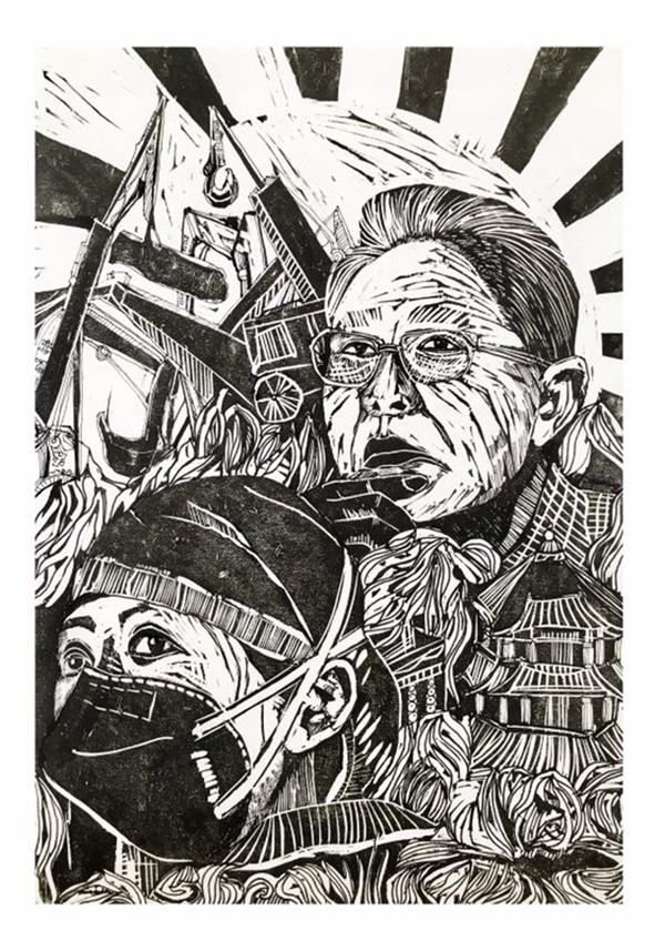 《勇敢的逆行者》版画-陈锦霞