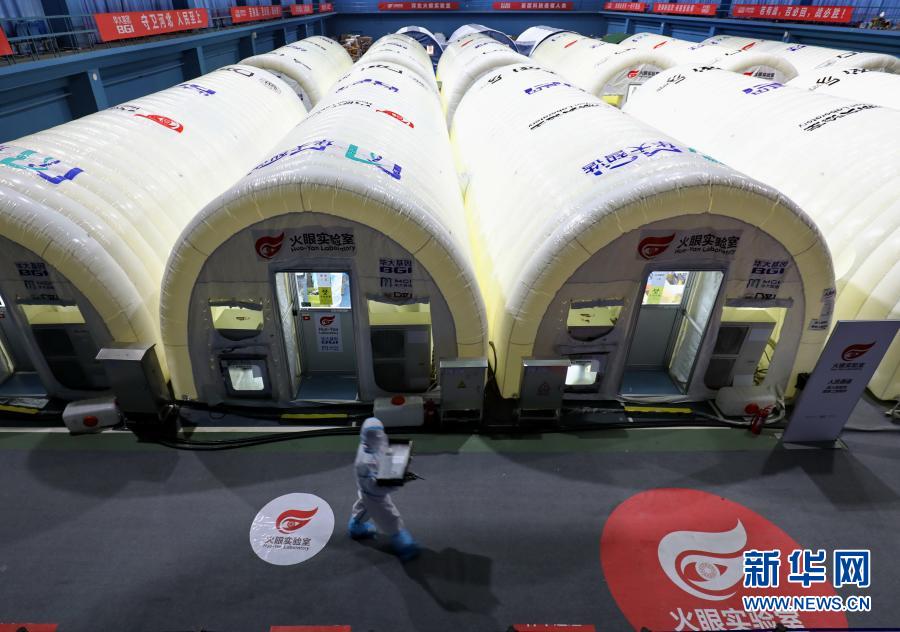 自1月8日在河北体育馆建成投运以来,截至1月22日,石家庄“火眼”实验室(气膜版)共计完成528万人份核酸样本检测。实验室内每三舱“火眼”为一组,分别承担扫码取样、核酸提取和样本检测功能,为石家庄地区的疫情防控工作提供有力支持。