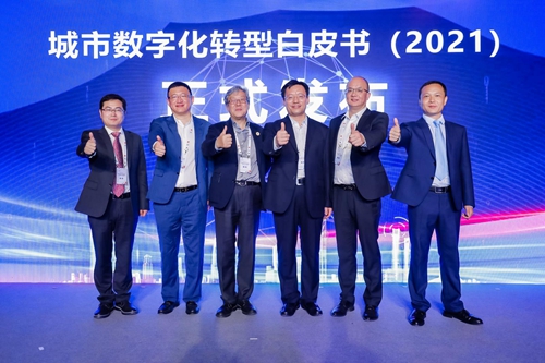 与会嘉宾还就城市数字化建设与运营、城市制度重塑等话题展开深入交流。在与会嘉宾见证下,大会正式发布《城市数字化转型白皮书2021》。上海智慧城市发展研究院院长盛雪锋从发展趋势、内涵特征、理论模型、转型路径等维度介绍了白皮书的主要内容,为城市数字化转型实践提供了重要参考。