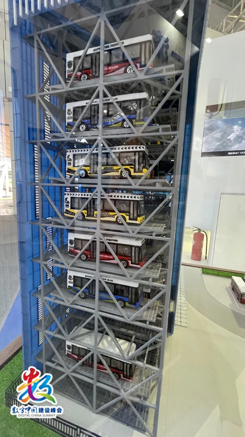 1、2、3、4、5……9! 公交车也能叠罗汉? 听起来不可思议 在10号馆里能“变现” 展商带来的立体式公交综合车场模型 让市民对未来福州建设 首座立体式公交综合车场 有了期待