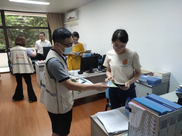 省应急厅以倡导文明健康绿色环保生活方式为主线,讲文明、铸健康、守绿色、重环保,深化推进爱国卫生运动、无烟党政机关建设、绿色出行、节能环保等工作。2021年6月16日,厅志愿服务队联合鼓楼区温泉街道东湖社区开展生活垃圾分类志愿宣传活动,走进机关各处室,发放《生活垃圾分类指南》,介绍垃圾分类工作流程,现场答疑,引导干部职工精准分类、精准投放,不断增强节约意识、环保意识和生态意识,大力营造广大干部职工积极支持、人人参与的良好氛围。