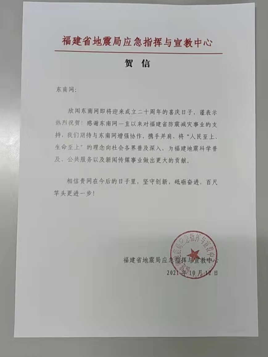 福建省地震局贺信