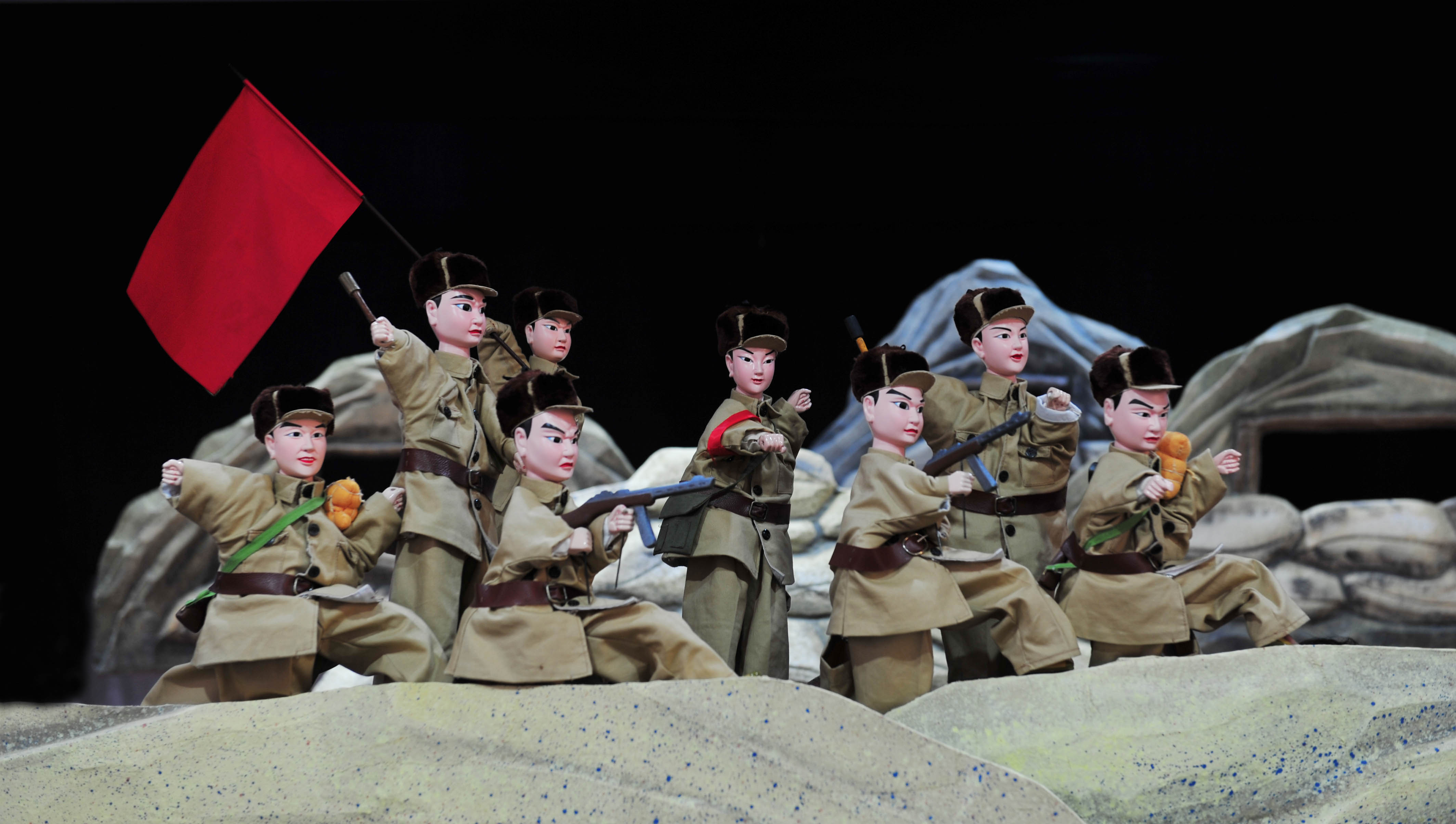 《黄继光》剧照 惠安县掌中木偶戏艺术保护传承中心供图 本届会演除了现代戏还有一批新编历史剧和整理改编的传统戏,如提线木偶剧《小金刚传奇》、高甲戏《衣衫换江山》,以及南音《阔阔真》等剧目,其中提线木偶剧《小金刚传奇》是一部原创剧目,通过小金刚从一个豪放英勇、不畏艰难,为民除害的勇士,蜕变为一位居功自傲、纵徒为害、令人畏恨的“人祸”,最后又幡然醒悟,成为一个“知耻后勇”的真勇士的性格与命运变化过程,以及众村民从对小金刚感激涕零、优渥款待、歌功颂绩,再到心生怨恨,甚至庆祝其牺牲的态度变化,揭示蕴含其中的深刻思想内涵,该剧将神话、传奇、寓言等因素有机融合,演绎成一出亦真亦幻、生动有趣的新偶剧,努力追求思想性、艺术性与观赏性的统一,寻求非物质文化遗产在新时代的新发展。